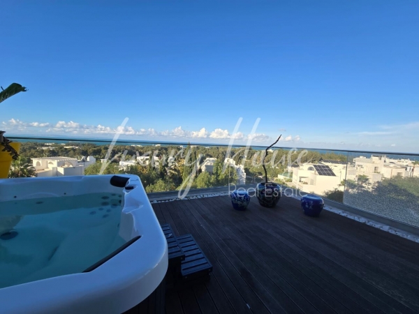 Luxury House vous propose à la location un superbe Duplex S+4 spacieux et lumineux vue mer et foret offrant une vue dégagé et verdoyant située dans les plus beau quartier du Gammarth .