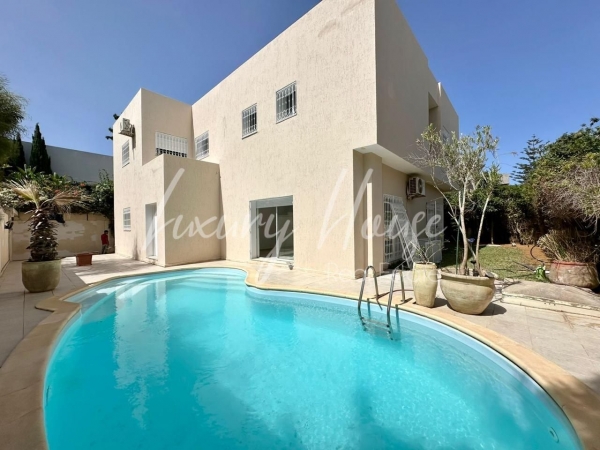 Luxury House vous propose à la location une charmante villa S+4 avec Jardin et piscine d'une superficie 350m² située dans un quartier calme et sécurisé à La Marsa