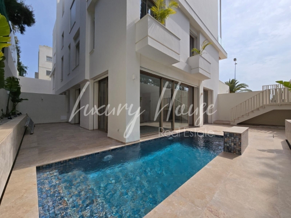 Luxury House vous propose à la location un superbe duplex S+3 avec piscine et deux grande terrasse vue mer située dans les plus beau quartier de la Marsa