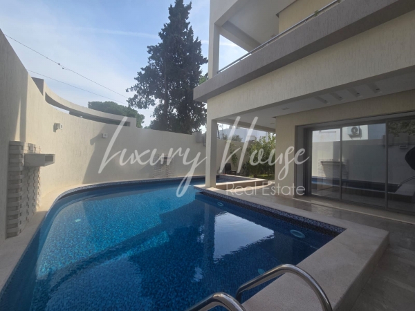 Luxury House met à la location une superbe villa S+4 moderne jamais habité avec piscine spacieuse et lumineuse située dans un quartier ultras sécurisé proche de toutes les commodités à la Marsa