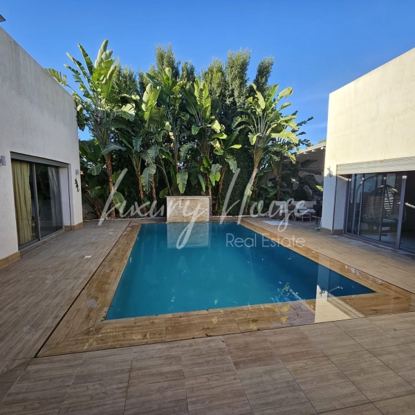 Luxury House met à la location une charmante villa S+4 très haut standing plain pied avec piscine et jardin située dans un quartier calme et sécurisée à La Soukra