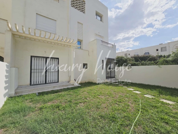 Luxury House met à la location un rez-de-chaussée de plain-pied S+2 richement meublé d’une superficie de 110 m², situé dans un quartier calme et recherché. Il se compose d’un salon spacieux, et de deux chambres avec dressings, d’une cuisine entièrement équipée (hotte, four, réfrigérateur, plaque de cuisson et lave-vaisselle) ainsi que d’une salle d’eau. Le bien est doté de la climatisation, du chauffage et d’une connexion internet. À l’extérieur, vous bénéficiez d’un agréable jardin privatif.