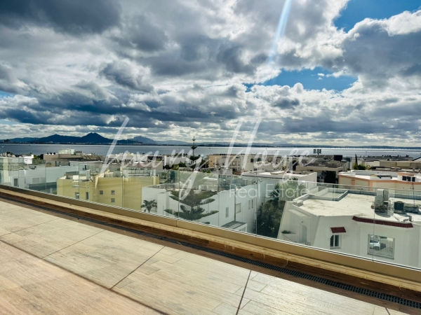 Luxury House vous propose à la location un adorable penthouse S+3 Spacieux et lumineux d'une superficie 260 m² occupant le 2éme et le dernier étage d'une résidence calme et sécurisé avec piscine commune .
