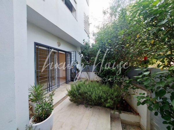 Luxury House vous propose à la location un superbe appartement S+2 avec Jardin spacieux et lumineux situés dans une résidence calme et sécurisée à proximités de toutes les commodités aux Jardins de Carthage