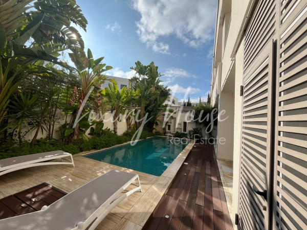 Luxury House vous propose à la location un superbe appartement S+1 richement meublé occupant le 1ér étage d'une petite résidence en R+2 calme et sécurisé à proximités de toutes les commodités