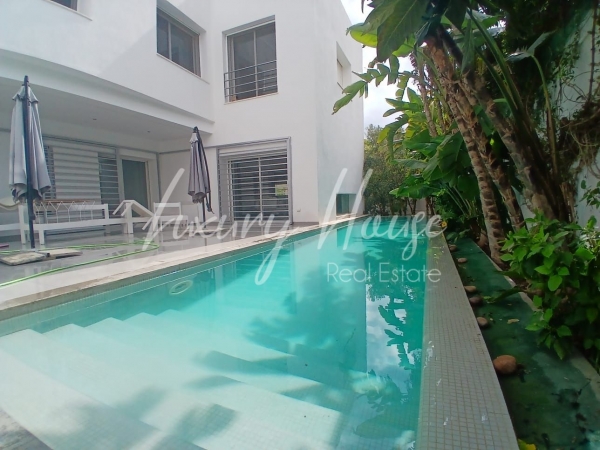 Luxury House vous propose à la location une villa S+3 meublés avec piscine et jardin totalement rénovée située dans un quartier calme est sécurisé à la Marsa