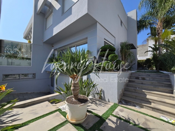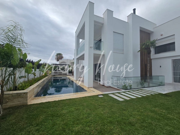 Luxury House vous propose à la location une luxueuse villa S+3 moderne avec piscine entourée par un jardin arboré et gazonné offrant une vue verdoyant situé dans un quartier calme et sécurisé à la Marsa les Pins