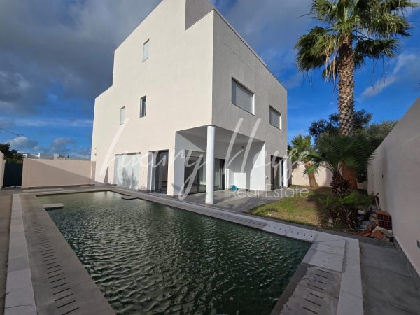 Luxury House vous propose à la location une villa S+4 moderne avec piscine et jardin spacieuse et lumineuse située dans un quartier calme et sécurisée à la Marsa