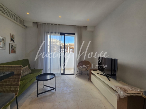 Luxury House vous propose à la location un superbe appartement S+1 richement meublé occupant le 1ér étage d'une petite résidence en R+2 calme et sécurisé à proximités de toutes les commodités