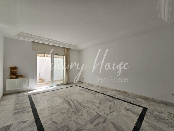 Luxury House vous propose à la location un spacieux appartement S+2 aux rez-de-chaussée avec deux terrasse , située dans une résidence calme et sécurisés proche de toutes les commodités à La Marsa .